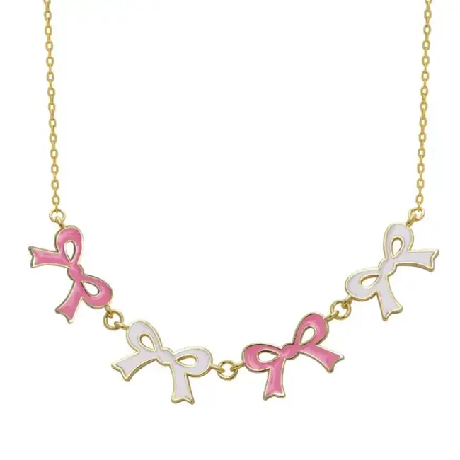 Lily Nily Flat Bow Link Necklace | Pink + White