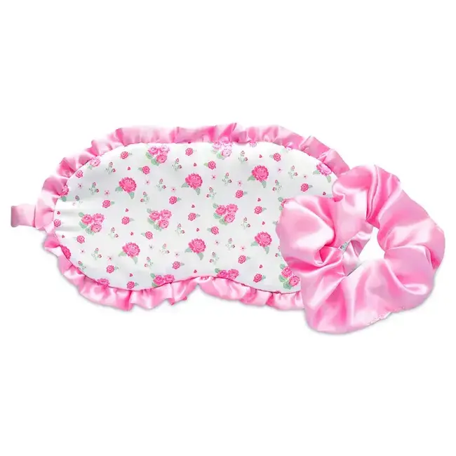 Featuring a delicate pink rose pattern and elegant ruffles, this set is designed to help you drift off into a peaceful sleep while keeping your hair perfectly in place. The cushioned eye mask features a satin lining and a comfortable elastic strap to block out light for deep relaxation, while the matching oversized scrunchie helps prevent hair breakage. Whether it’s for a cozy night in or a gift for a friend, this set adds a pop of floral flair to any nighttime routine.