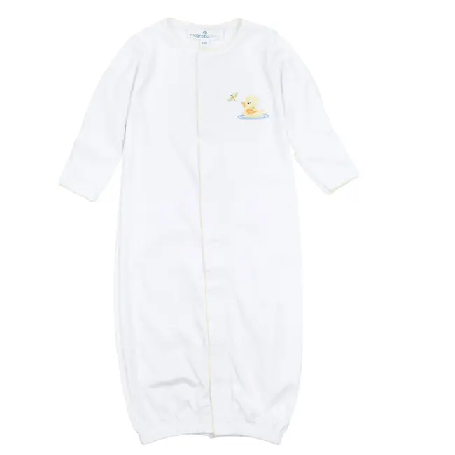 The Darling Ducklings Yellow Converter is perfect for your little one! It's gender-neutral and super versatile. A converter can easily switch between a gown and a romper, making diaper changes a breeze. Ideal for parents looking for convenience and style!
