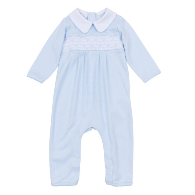 Made from the softest 100% Pima cotton, this heirloom-quality playsuit features hand-smocked detailing and delicate embroidery across the chest for a refined, classic look.